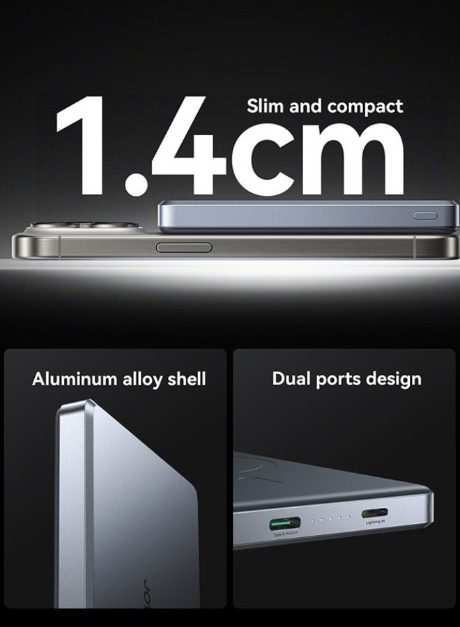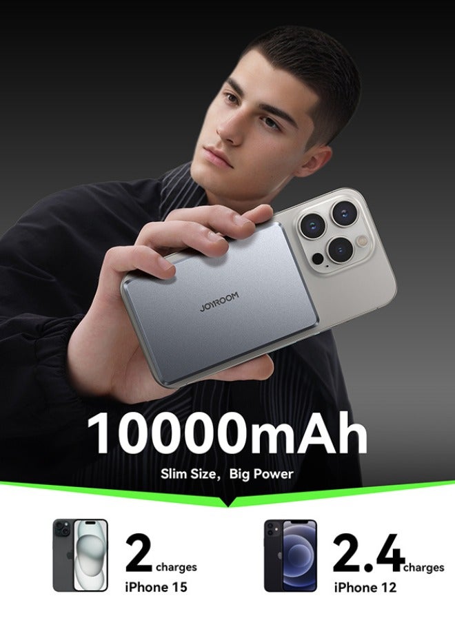 10000 mAh 20W Ultra-thin Metal Magnetic Wireless Type-C & Lighnting Power Bank Fast Charging Wireless Magnetic Power Bank Including a Type-C to Type-C 60W 0.25m Grey