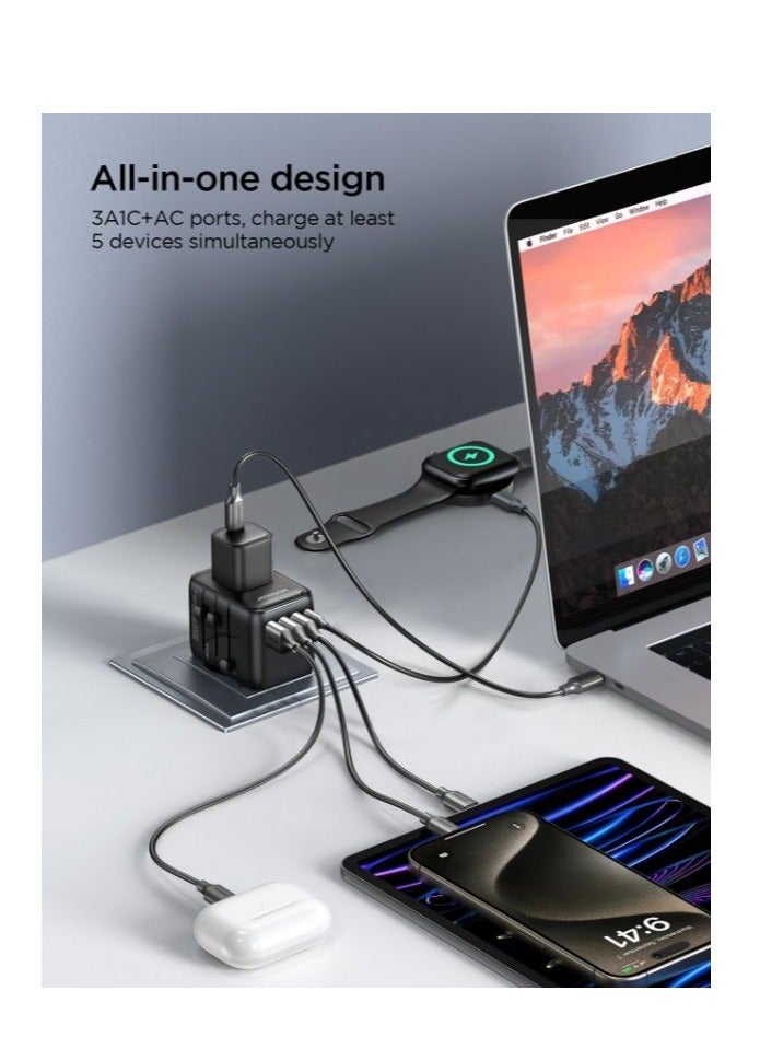 17W Universal Travel Adapter International Plug Adapter With 3 USB 1 Type C Fast Charging All In One Worldwide Wall Charger UK US AUS EU Black