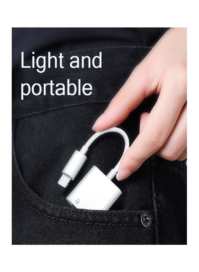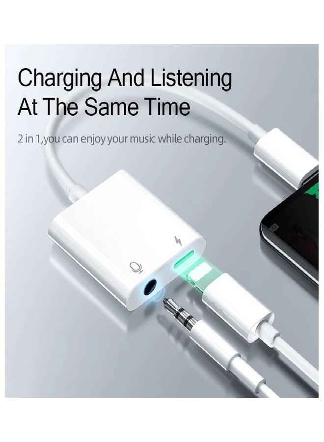 2 In 1 3.5mm Lightning To Audio Headphone And Jack Adapter Splitter For Apple iPhone White