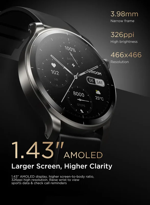 300 mAh 300 mAh JR-FV1 Smart Watch Can Make And Receive Calls 1.43-Inch HD Screen Bluetooth Connection Fitness Monitoring For Men And Women Compatible With Apple And Android Metal Silicone Strap Space Grey