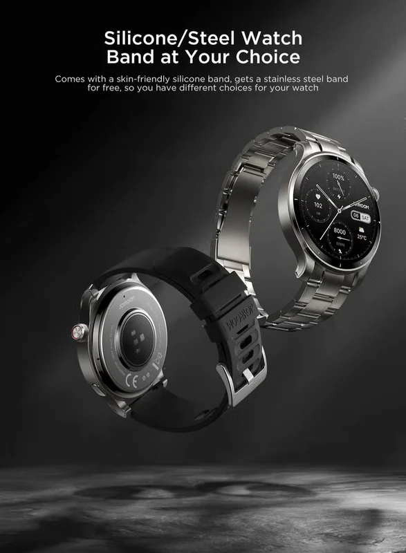 The body of the JR-FV1 series 1ATM level waterproof smart watch is made of shiny metal material...