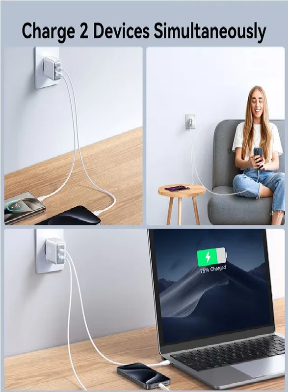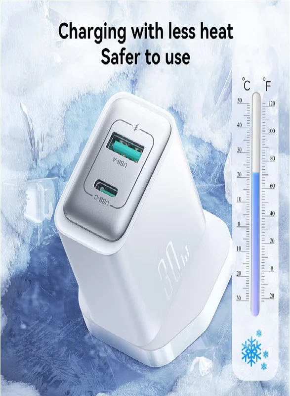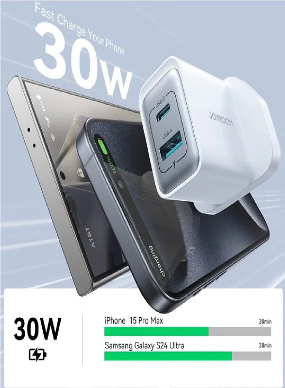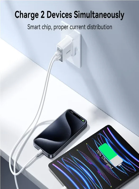 30W USB+USB-C / Type-C Wall Fast Charger Compatible with iPhone 16/15/14/14 Pro/14 Pro Max/13/12/SE2020/11/XR/XS Max/X/iPad Samsung S25/S24/S23 All Series UK Plug White
