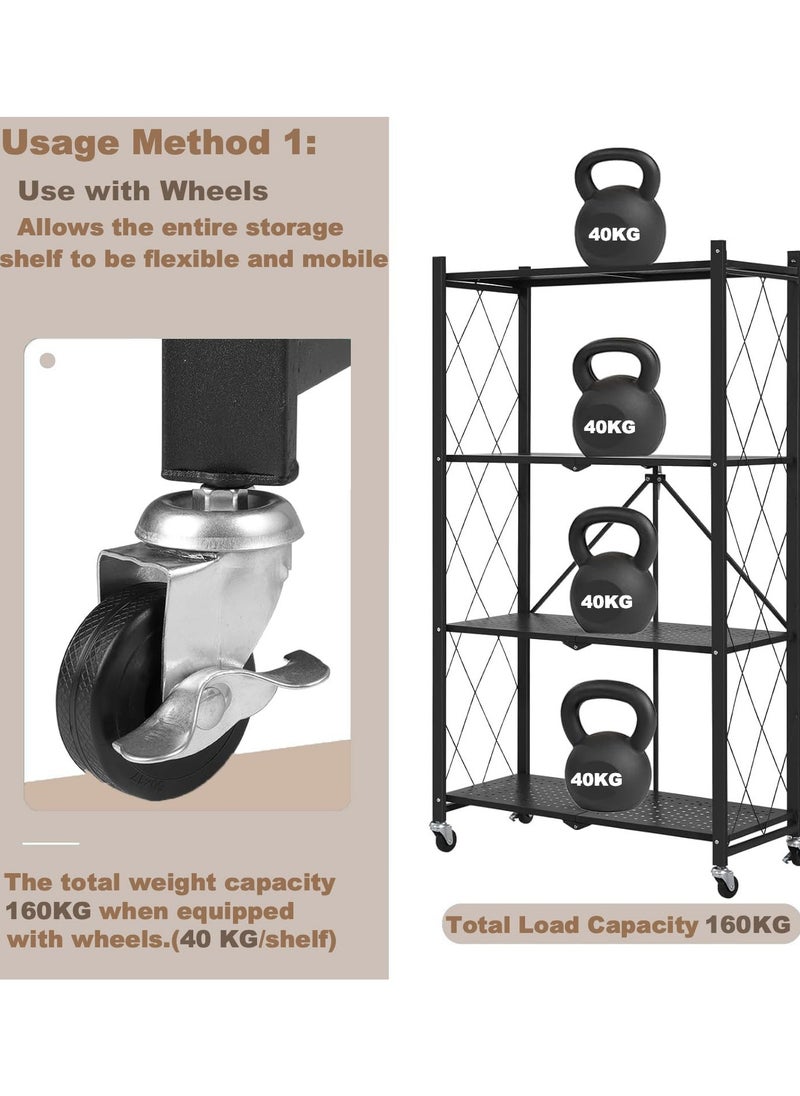 The 4 Tier Thickened Foldable Storage Rack with Wheels offers a convenient solution for organizing your space without the hassle of assembly. With its four spacious tiers, this shelving unit provides ample storage for a variety of items, whether it's in your garage, kitchen, basement, or pantry. Constructed from heavy-duty metal, this rack is designed to withstand heavy loads and ensure durability over time. The foldable design allows for easy storage when not in use, while the built-in wheels enable effortless mobility, letting you move the rack wherever it's needed. Whether you're storing household supplies, tools, or equipment, this versatile storage rack is a practical addition to any space.