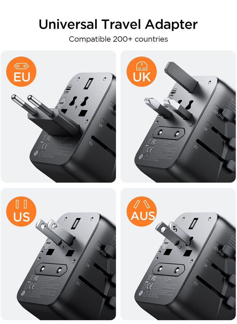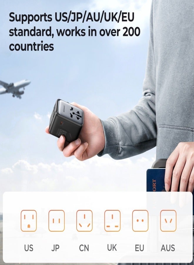 65W Universal Travel Adapter International Plug Adapter With 2 USB 2 Type C Fast Charging All In One Worldwide Wall Charger UK US AUS EU Black