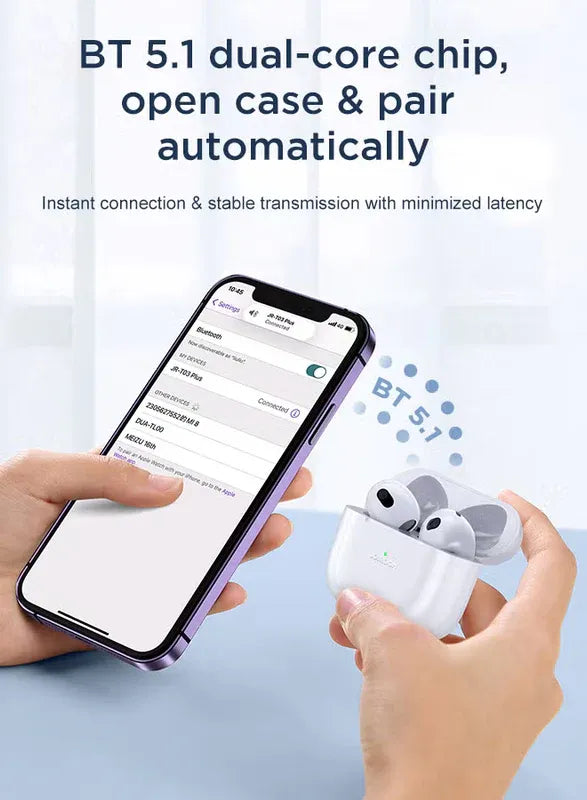 JR-T03S Plus Bluetooth 5.1 TWS Half In-Ear Earphones Wireless Earbuds With Protective Cover Standard Version White