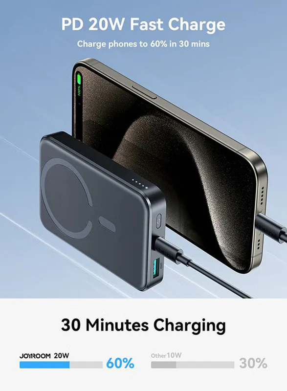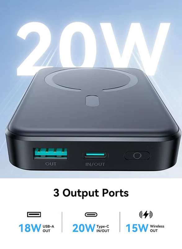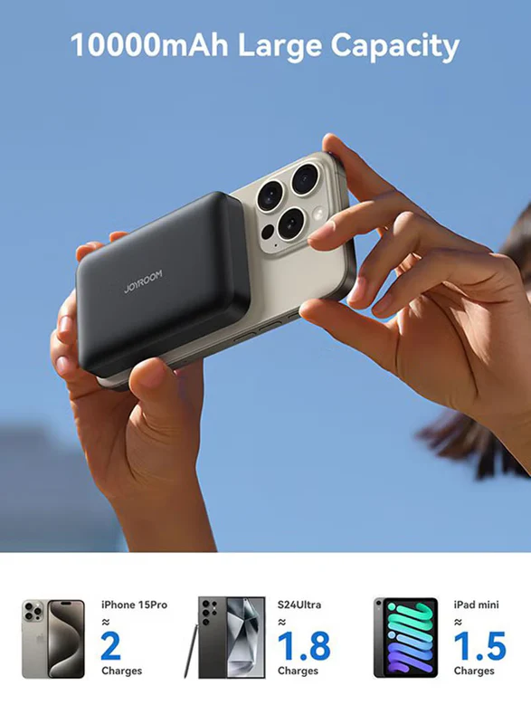 Jr‑W020 Mini 10,000 Mah Magnetic Wireless Power Bank – 20 W Fast Charge (5–15 W), Usb‑C In/Out, Compact Pocket Design, Strong Magnetic Grip & Fireproof Build Black