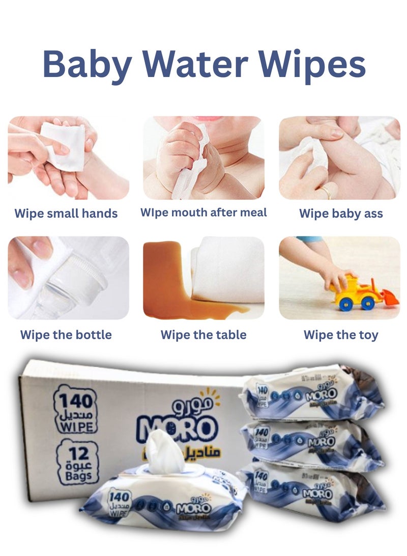 Moro wet wipes are designed with your baby’s delicate skin in mind. These fragrance-free wipes offer a gentle cleansing experience without harsh chemicals or added perfumes, making them ideal for newborns and babies with sensitive skin. Enriched with moisturizing properties, they clean effectively while keeping your baby’s skin soft and soothed. Each pack contains 140 wipes, and with a total of 12 packs, this value bundle ensures long-lasting care. The resealable packaging keeps the wipes fresh and hygienic with every use, whether at home or on the go.