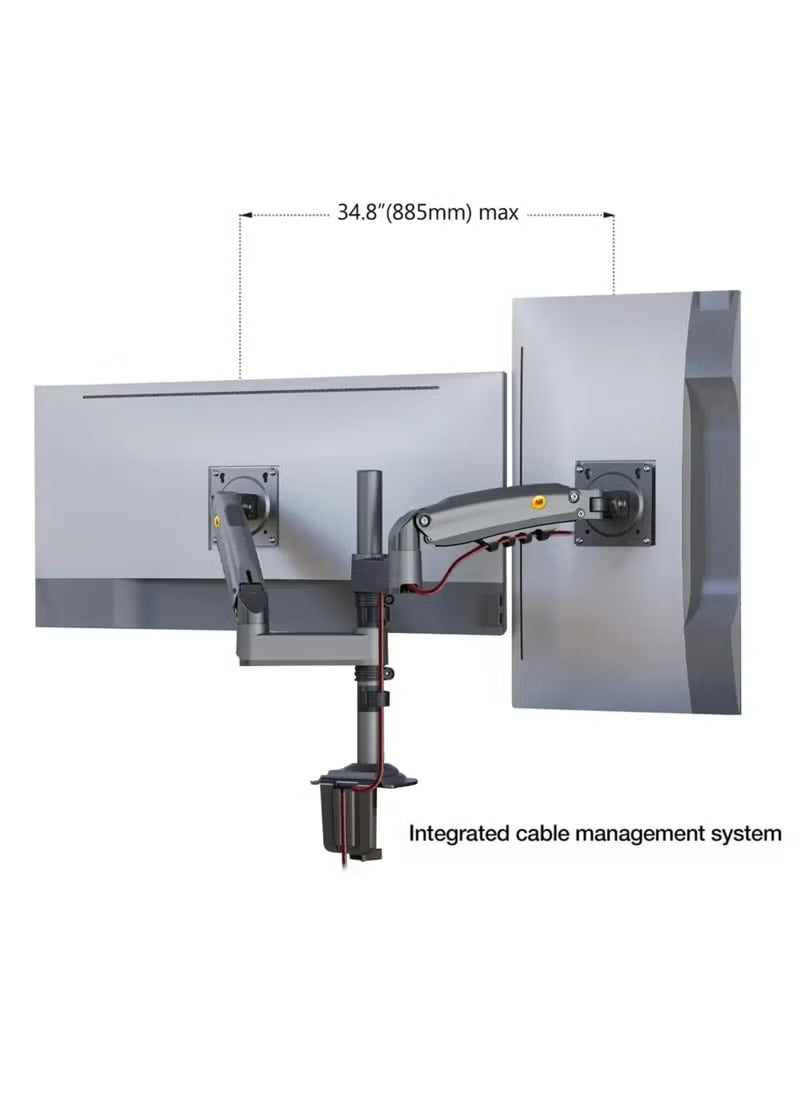 The NB ERGONOMIC Dual Monitor Desk Mount Stand is the perfect solution for enhancing your workspace. Designed to fit two monitors up to 27 inches, this mount offers exceptional flexibility with full motion capabilities. The monitor arms swivel, tilt, and rotate, allowing you to position your screens exactly where you need them for optimal viewing comfort. By elevating your monitors, the desk mount also frees up valuable desk space, helping to create a cleaner and more organized workspace. Constructed from durable materials, this mount ensures a sturdy and secure hold for your monitors. Installation is quick and easy with the included hardware and guide, making it an excellent addition to any home or office setup.